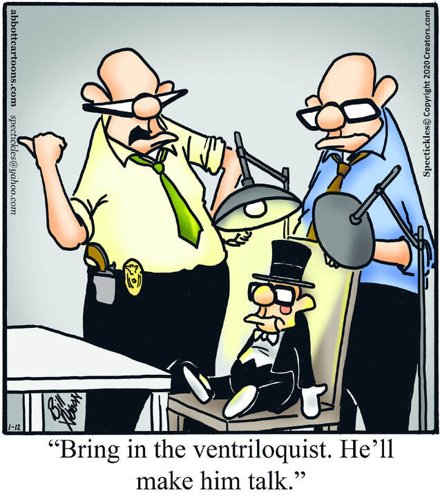 Spectickles, a cartoon primarily about a married couple with, to put it mildly, communication challenges, is an amalgamation of physical traits that author Bill Abbott finds humorous: the deadpan expression and gravity-tugged flesh of Walter Matthau, the powerful presence of Ethel Merman, the glasses of his great-grand-parents and a host of other subtleties.